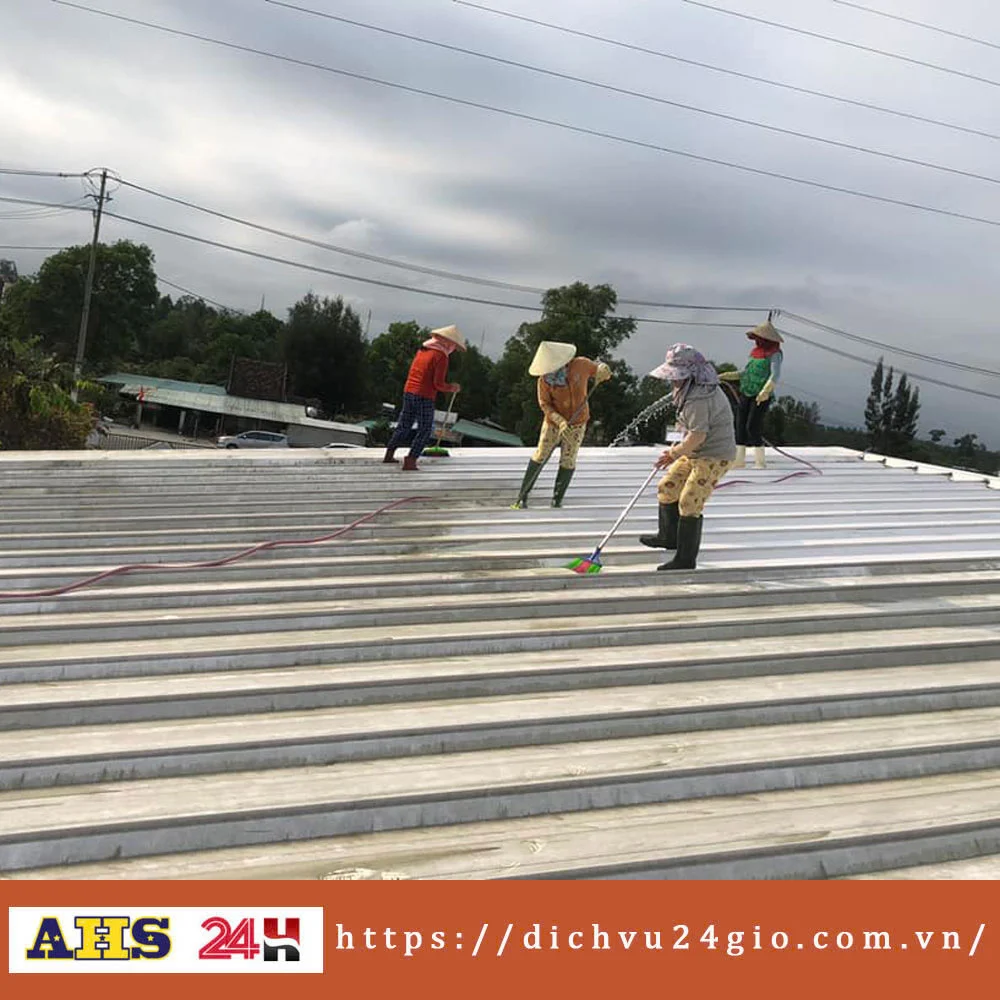 (Yêu cầu kỹ thuật cao hơn do không gian nhỏ và phức tạp) - Vệ sinh mái tôn trang trí: